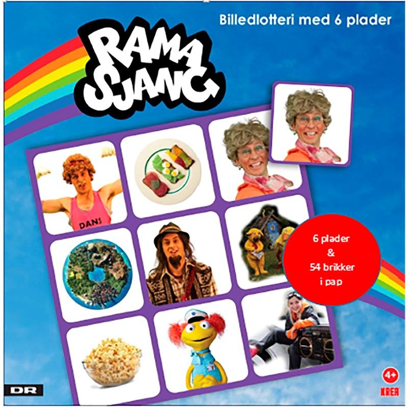 Roligt bildlotteri med alla möjliga kända karaktärer och olika kända saker från Ramasjang. Spelet innehåller 6 brädor och 54 bitar, vilket innebär att det kan vara 6 spelare som spelar spelet tillsammans. Förutom att spela roligt är det också ett lärorikt spel där du måste lyssna på vad som heter och ändå kunna komma ihåg det medan du tittar på din disk.