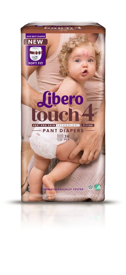 libero touch nr. 4 7-11 kg är helt perfekt för ditt barn. Blöjan känns som bomull och sitter bra och stängs säkert runt barnets ben, vilket förhindrar läckage dag och natt. Blöjan är lätt att dra upp över bebisens rumpa och när det är dags att byta blöja är det lätt att slita i sidan. Materialet andas och håller därför barnets hud mjuk. Libero Touch är godkänd av Svanen och uppfyller därför stränga nordiska miljö- och hälsokrav vad gäller både funktion och kvalitet.