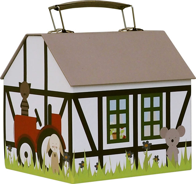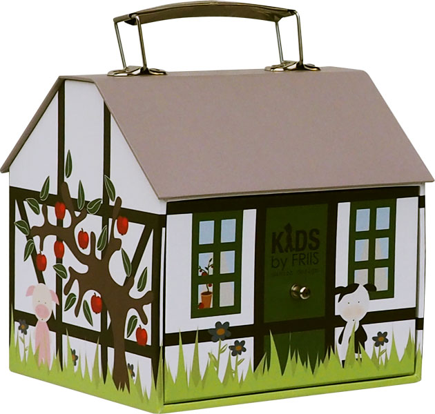 Den söta gården med en låda från barn i Friis. I bröstlådan kan ditt barn förvara nappar, nallar och andra leksaker.