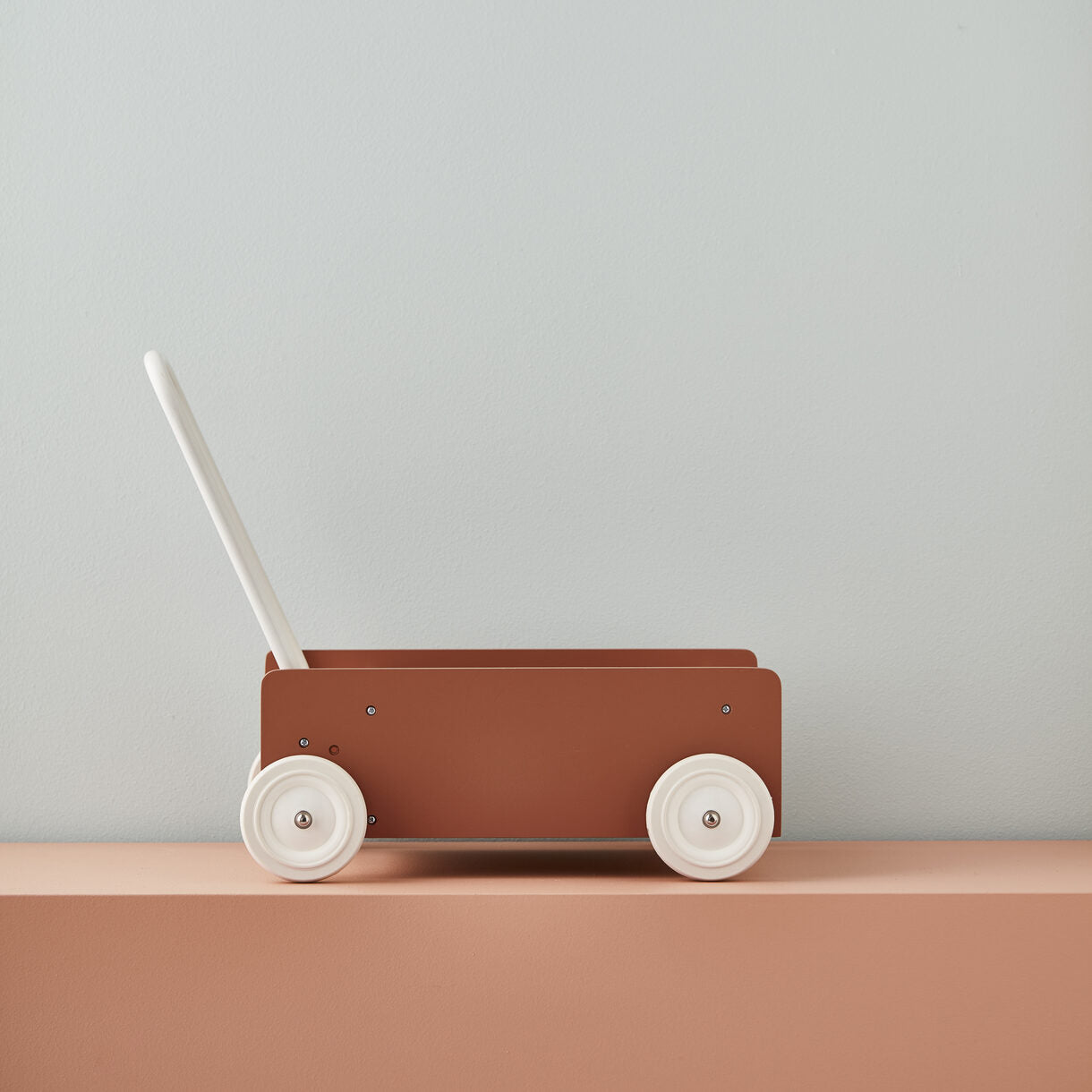 En superelegant träbil som är det perfekta stödet för barn som precis ska lära sig gå, men också som vagn att köra runt med leksaker, dockor och så vidare. Handtaget på vagnen kan justeras i förhållande till om det ska vara helt rakt för mer stöd för barnets balans eller för äldre barn som är stabilare och därför kan ha handtaget lite lägre.