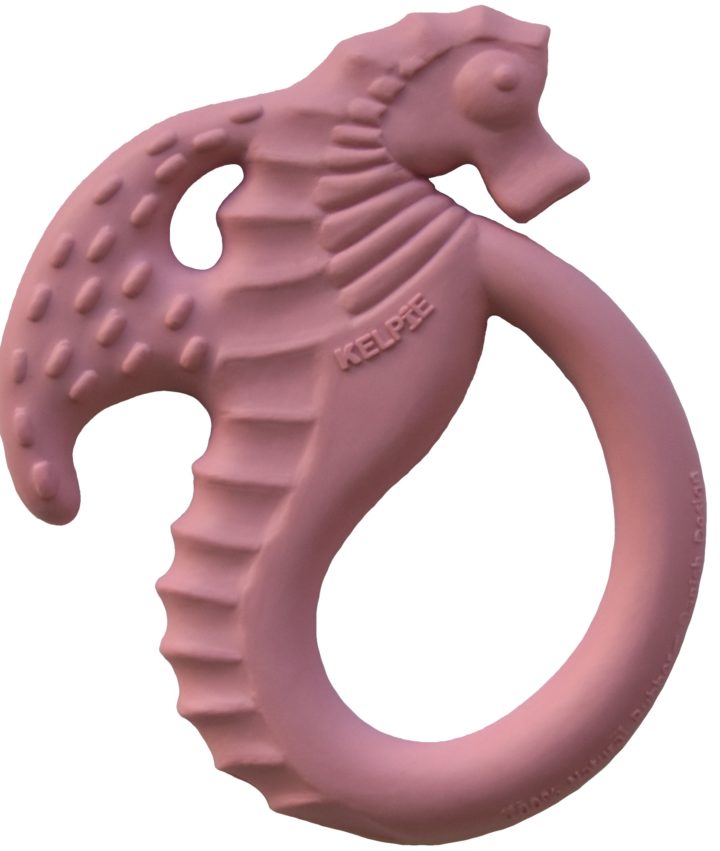 Med ett kelpiebett i en fin rosa färg, formad som en sjöhäst, kan bebisen lugna ömma tandkött när tänderna börjar växa. Den medtagna är designad med fina linjer och stötar som barnet kan tugga på fritt.
