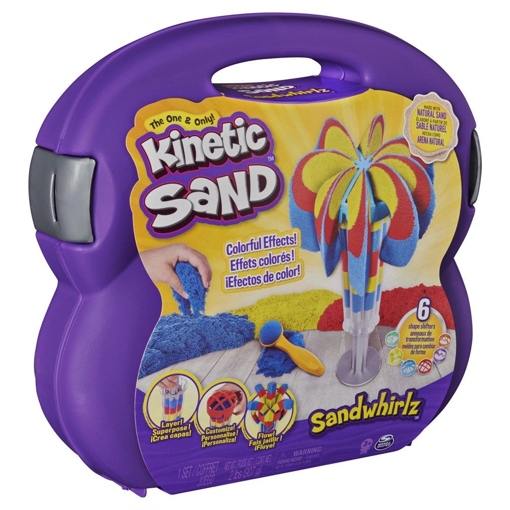 Detta set med verktyget Sandwhirlz ger ditt barn ett helt nytt spel! Här kan kinetisk sand i flera olika färger tryckas ut genom röret så att det rinner ut i mystiska och fantasifulla vågor av regnbågsfärgat material, så att det ser levande ut.