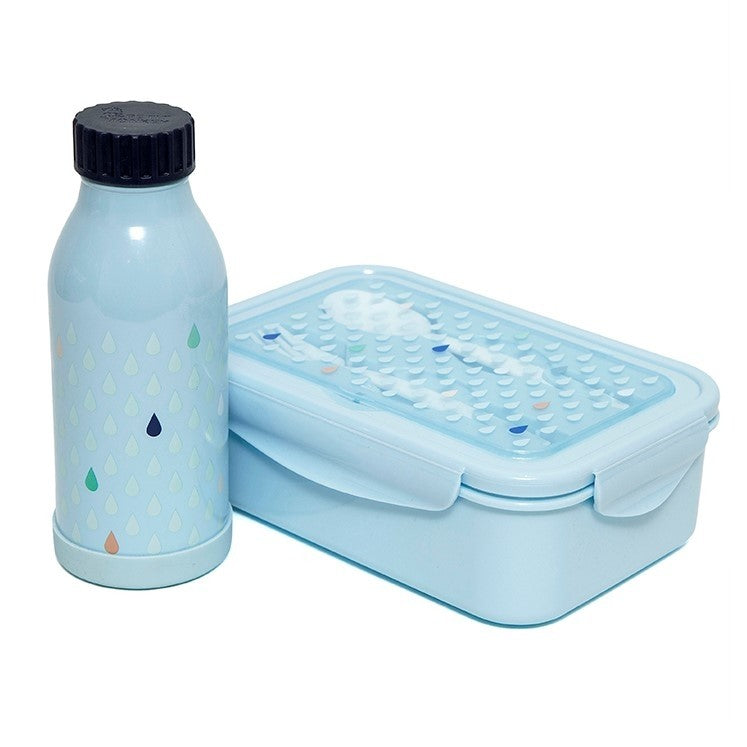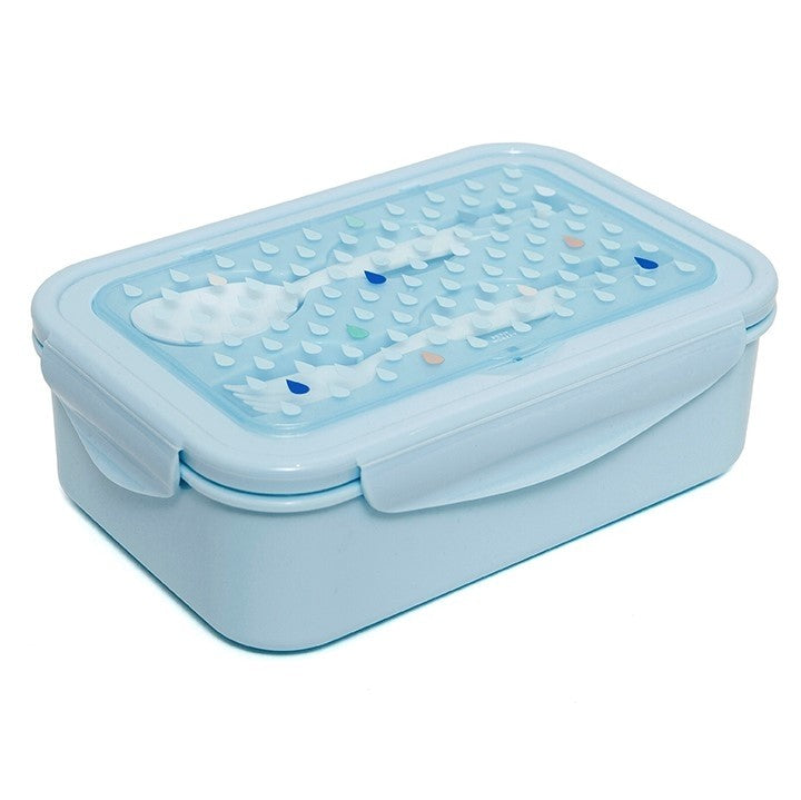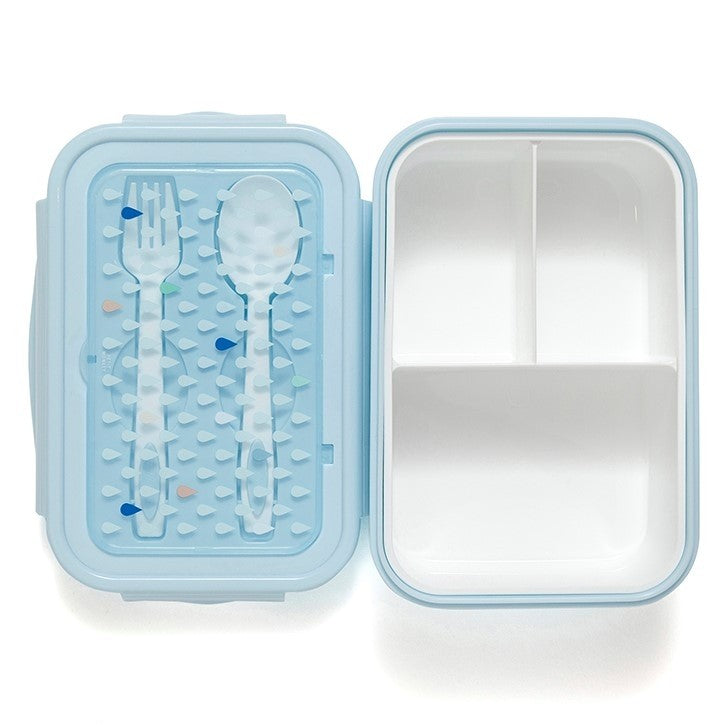 Vacker matlåda med bestick från Petit Monkey, som är indelad i fack, som till exempel Rågbrödssnacks och frukt kan förvaras separat. En sked och en gaffel ingår.
