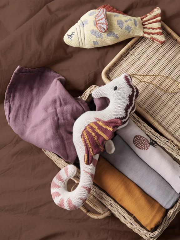 Denna söta musikväckarklocka från Ferm Living pryder barnrummet så fint. Om du drar i svansen spelar den en söt melodi som lugnar barnet.