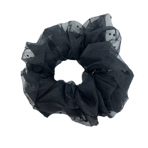 Den härliga stora scrunchen i finaste svarta färgen med små fina svarta prickar. Denna scrunchie kan kombineras med alla kläder på grund av den individuella färgen. Den kan användas i alla åldrar och för alla tillfällen, oavsett om det är i skolan, jobbet eller födelsedagar. Därför är den perfekt för vardagslooken, men också den extraordinära looken.