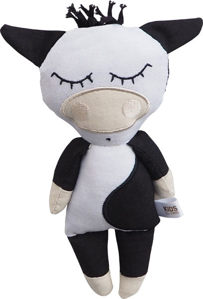 Denna fina skallra formad som en ko kommer från barn av Friis och har många vackra detaljer. Skallen är bra för att stimulera ditt barns sinnen.