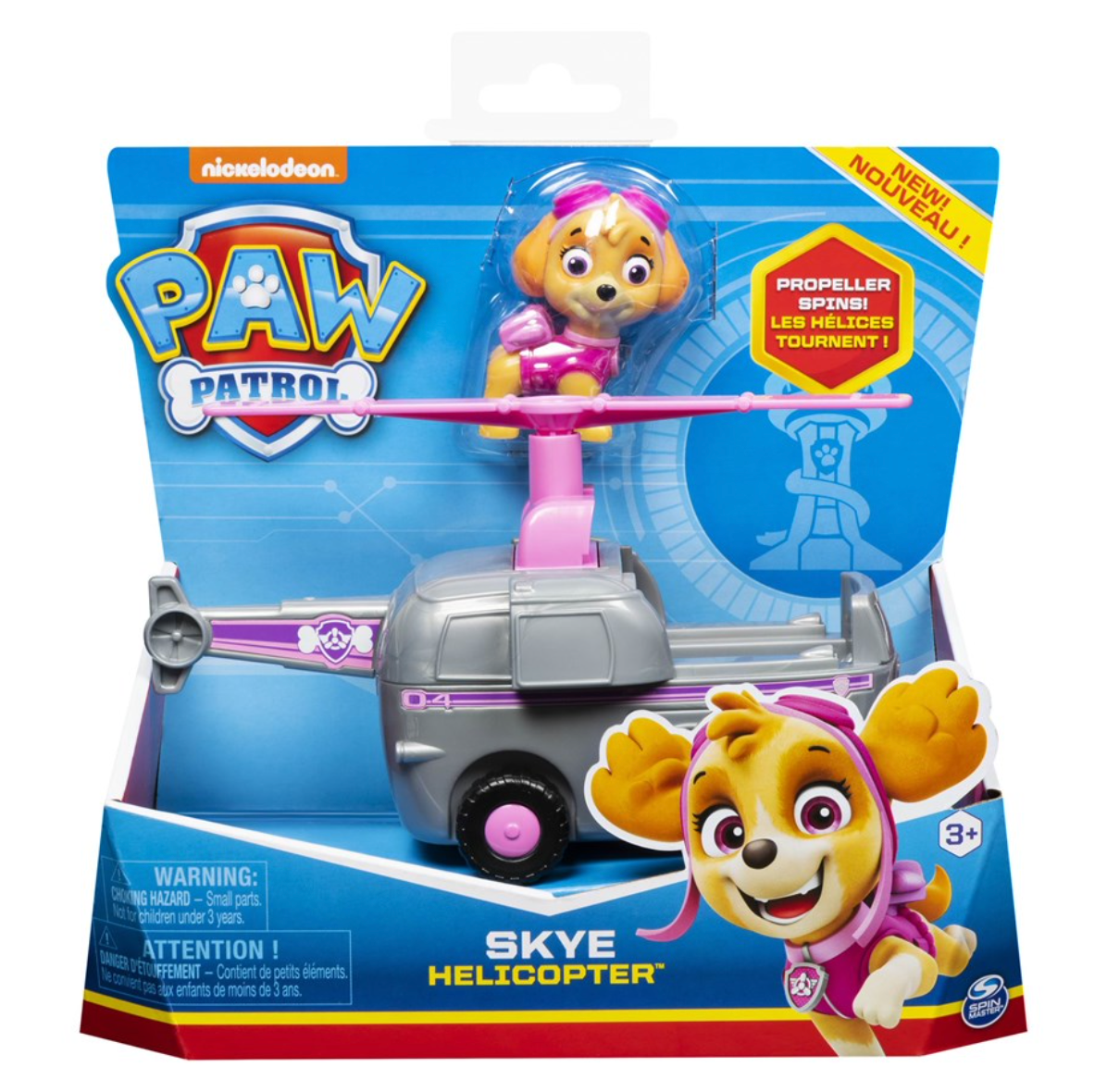 Nu kan du åka på räddningsuppdrag med valpen Skye från Paw Patrol i hennes nya räddningshelikopter. Helikoptern har fungerande hjul och en härlig rosa propeller, så uppgifter kan utföras både på land och i luften.