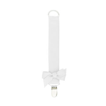 Om du letar efter den finaste nappen till din lilla så är detta rätt för dig. Det är den enklaste och finaste nappen i finaste vita färgen. Den har en härlig liten rosett som skapar en perfekt detalj.